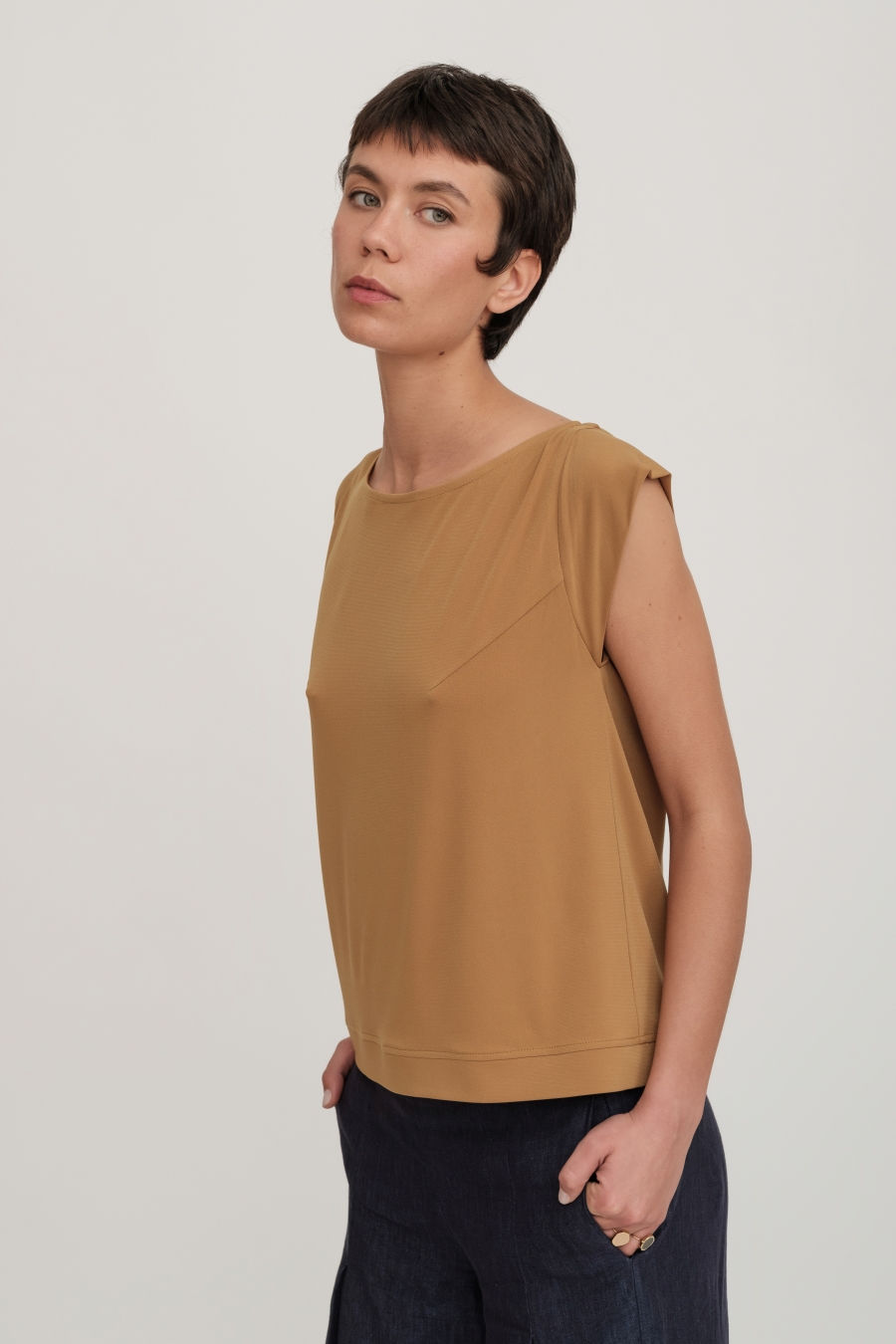 Top scollo quadro in viscosa