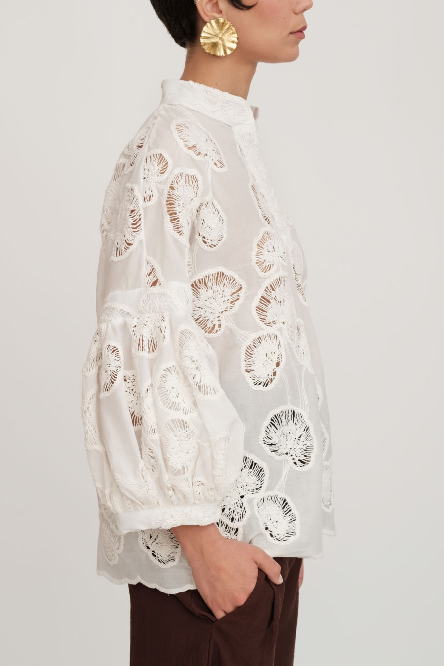 Camicia collo coreano in Garza di Cotone