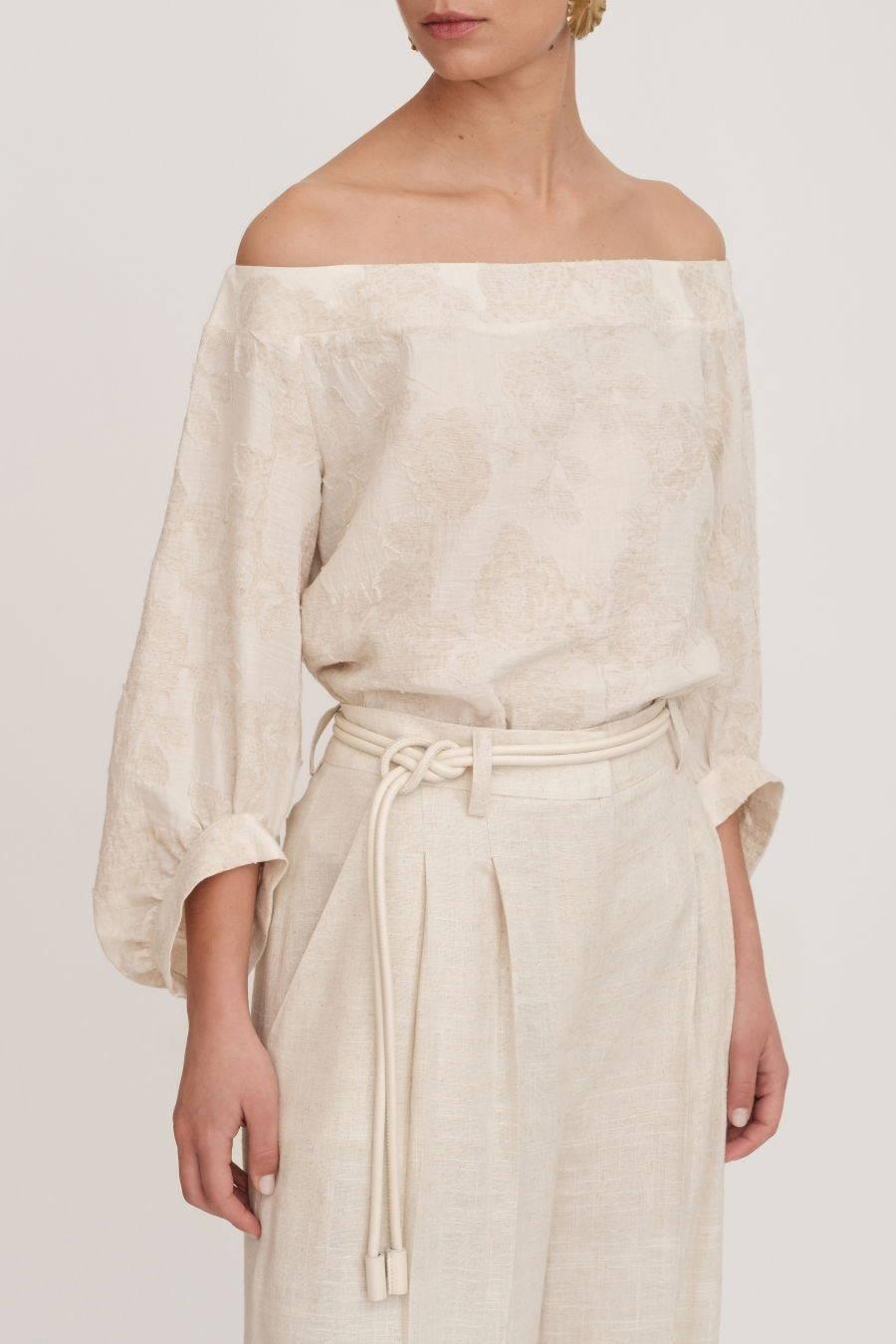 Camicia donna realizzata in lino lavorato, dalla texture naturale e leggermente materica, perfetta per una vestibilità fresca e raffinata. Il modello presenta un essenziale collo alla coreana che conferisce al capo un’eleganza contemporanea e pulita. Le maniche ampie sono caratterizzate da una ripresa prima del gomito, dettaglio che crea volume controllato e un movimento sofisticato. Il fondo con angoli smussati ammorbidisce la linea del capo, accompagnando una vestibilità a trapezio che scivola sul corpo con naturalezza, valorizzando la figura senza costringerla.